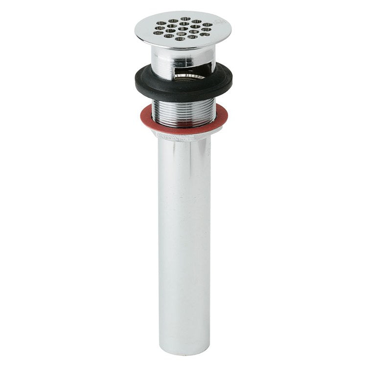 This 1-1/2″ drain fitting is made of durable brass with a chrome-plated finish. Comes with a tailpiece and a perforated grid strainer drain cover.