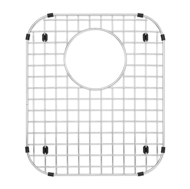 Protect your kitchen sink from scratches with this stainless steel sink grid. Protective rubber feet prevent mars and damage from cutlery, dishes, and pots while helping water drain as you rinse dishes. Features a rear drain hole opening to allow access to drain while in use. The grid measures 15-1/2″ wide x 13-1/2″ long. Fits the Blanco Stellar 1-3/4 double-bowl sinks (small bowl).