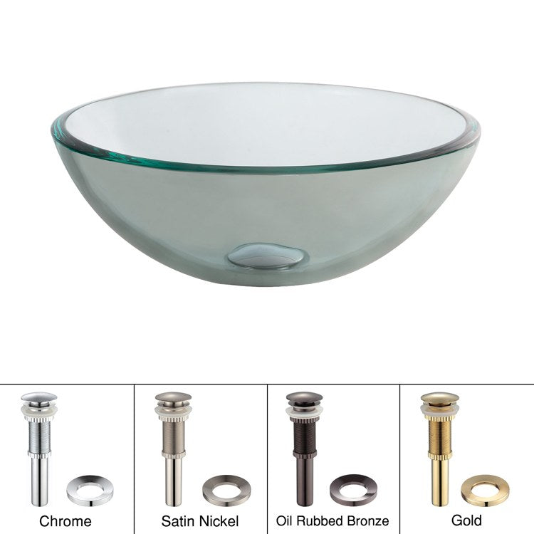 Add a touch of elegance to your bathroom with a Kraus clear glass vessel sink. Handcrafted from tempered glass, this modern bathroom sink coordinates with a variety of decor styles. A freestanding basin design creates a dramatic look with contemporary appeal. The smooth, polished surface is beautiful and requires minimal maintenance to keep clean. This versatile sink can be installed above-counter for all your stylish bathroom ideas.