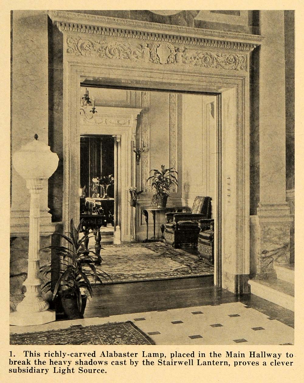 1921 Print Carved Alabaster Lamp Entryway Marble Home ORIGINAL HISTORIC GF4 Discount Free Shipping
