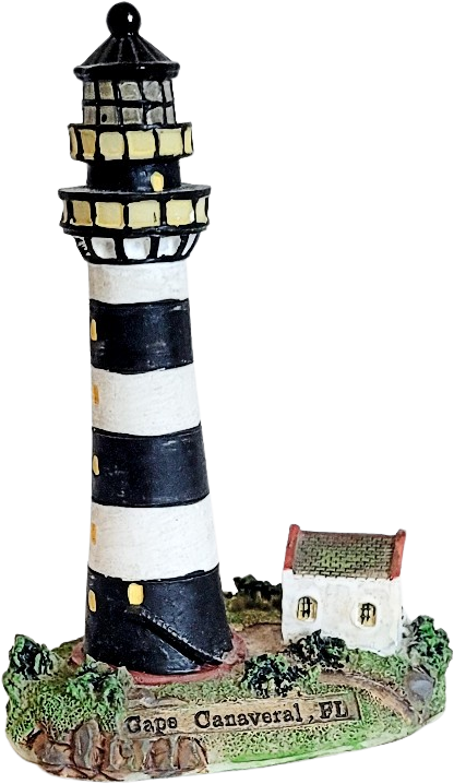 A vintage lighthouse Cape Canaveral figurine. It is from the Lighthouse Collection. It is 3 34 in wide at the base and about 5 in. tall. It is in excellent condition.