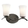 This three-light bathroom vanity fixture from the Armida collection is filled with distinctive touches, clean lines, and simple structures. This silhouette brings height and dimension to the Olde Bronze finish. May be installed with the glass up or down.