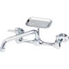 2 lever handle wall mount kitchen faucet with soap dish included. Compression cartridge. Fits standard 8′ installation. Polished chrome finish. Meets cUPC (Uniform Plumbing Code Canadian) certification, NSF (National Sanitation Foundation)/ANSI (American National Standards Institute) 371, and NSF/ANSI 61-9 standards. Brass Construction, 1/2′ Female Thread Inlets. Lifetime limited warranty. ADA compliant.
